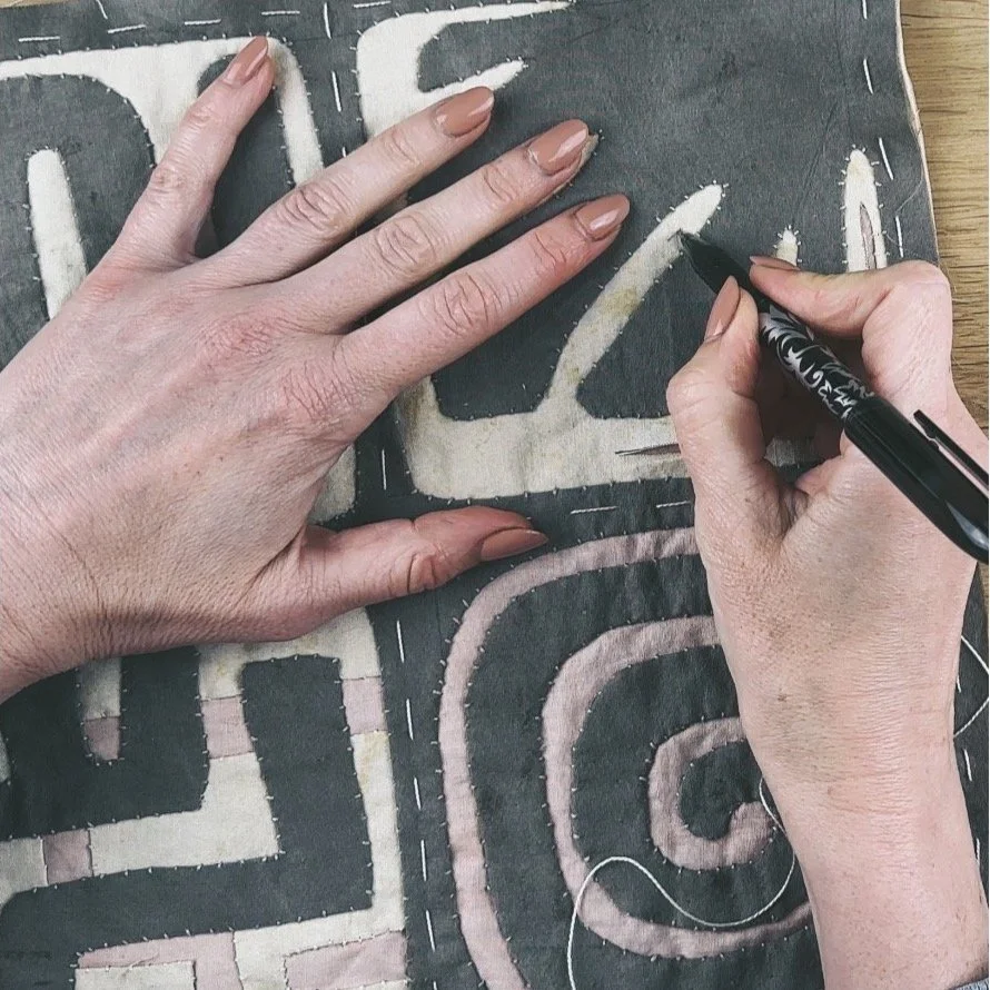 This tutorial is all about slowing down, tuning in, and stitching without pressure. Using scrap fabrics and a simple running stitch, you’ll create a tactile piece that gently unfolds over time. There’s no right or wrong—just a meditative rhythm of needle and thread, evolving with your mood and materials. While many choose to make a wallhanging, your stitching could just as easily become a meditation scroll, be incorporated into a functional item, or even used to reinforce and mend worn patches in clothing, much like traditional Japanese boro. It’s a beautiful project for those seeking stillness or reconnection, and a comforting one to return to whenever life feels full.
