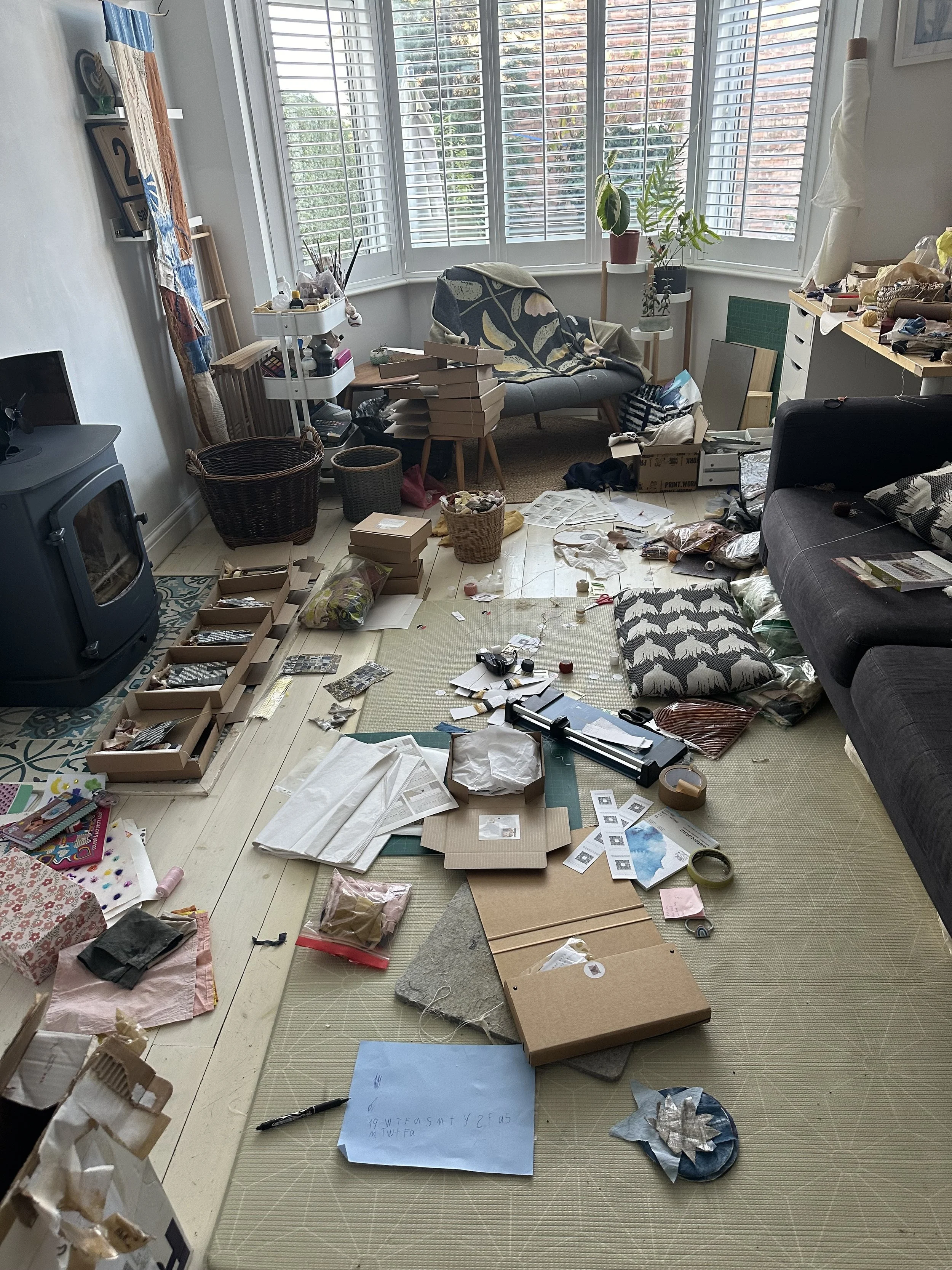 For the past three years, I’ve been working in my living room, which, while cozy, was far from ideal. My house is very open-plan. We eat, live, and play in the same space. My desk was constantly overflowing with piles of fabric scraps, threads were scattered throughout the house, and I was always on edge about my daughter’s sticky fingers potentially getting on my art. There was no division between my work life and home life, it was a strain on my relationship and I felt like I could never escape the mess.