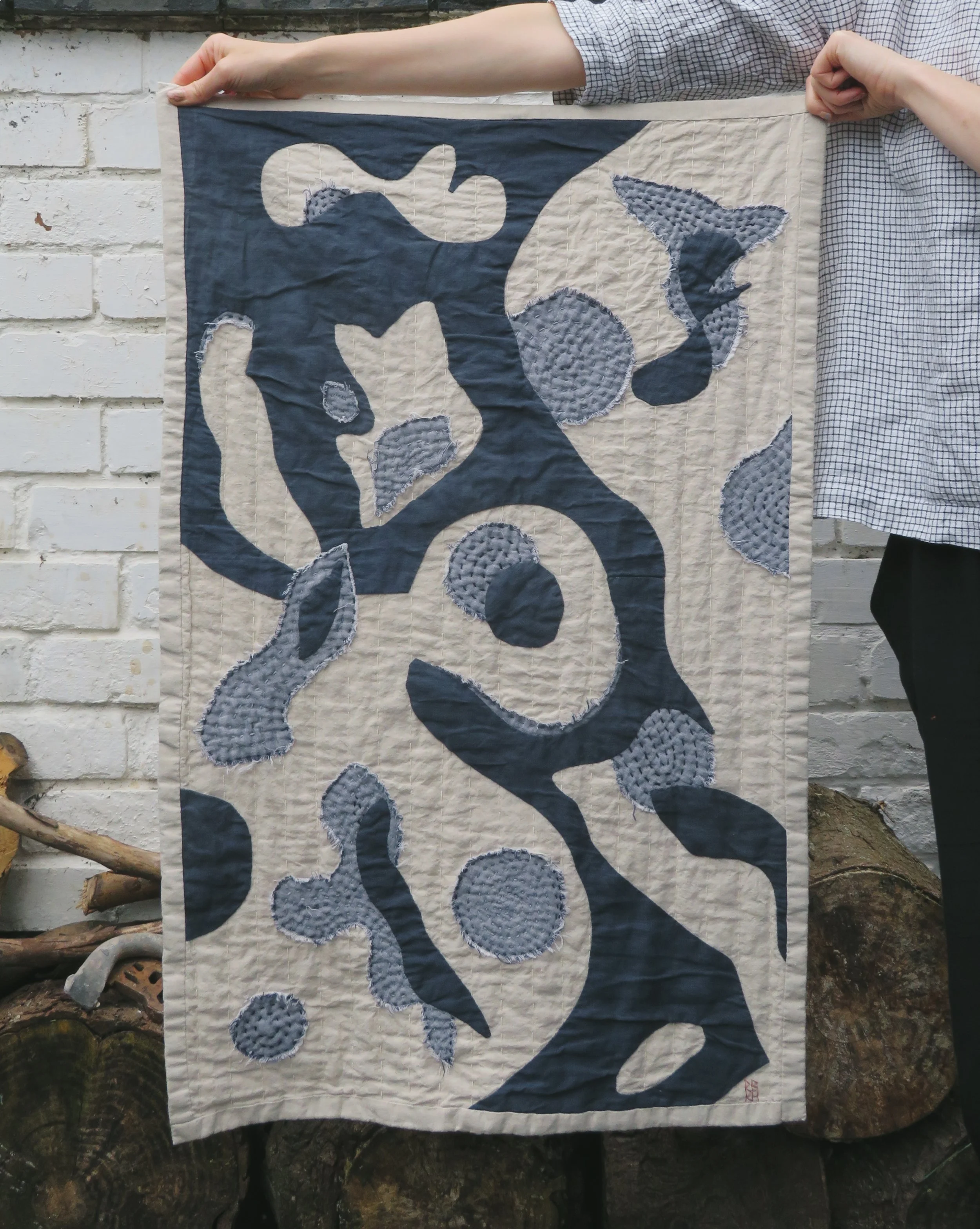 I use responsibly sourced linens and cottons for all of my products. This means an item could be composed of bolt end or deadstock fabrics, offcuts from garment or furniture making or repurposed from household textiles or clothing. I use 100% cotton batting chosen for it’s breathable qualities.